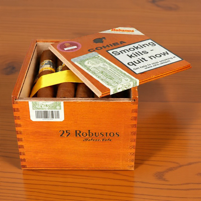 "Cohiba Robustos, full-bodied with notes of cocoa and leather."